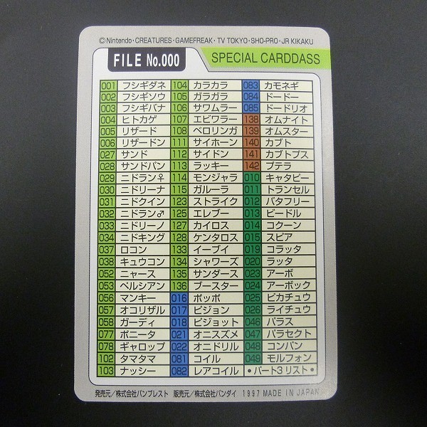 ポケットモンスター カードダス 1997年版から、「No.000」のスペシャルカードダスです。
