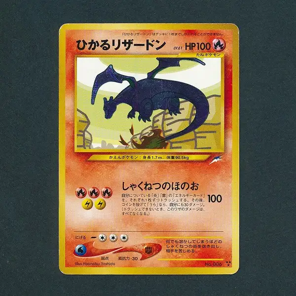 旧裏面ポケモンカードゲームから、ポケモンカード★neo 拡張パック第4弾「闇、そして光へ…」に収録されていた、「ひかるリザードン」です。